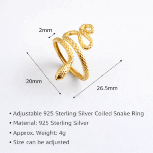 Made from 925 sterling silver with a polished gold finish, the ring combines durability with a luxurious appearance. The delicate snake texture and smooth curves create a minimalist yet eye-catching design that pairs perfectly with both casual and elegant outfits.