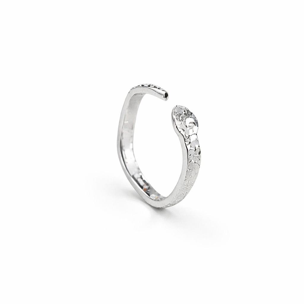 Designed with an adjustable open band, this ring comfortably fits most finger sizes. Its flexible design makes it easy to wear daily without worrying about sizing.
